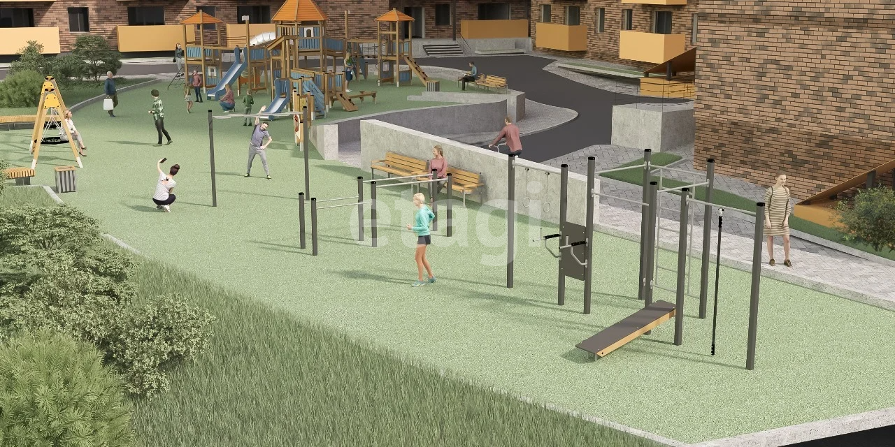 Для жителей комплекса будет создан уютный двор без машин, с современной детской и спортивной площадками, а также тихой зоной для отдыха.